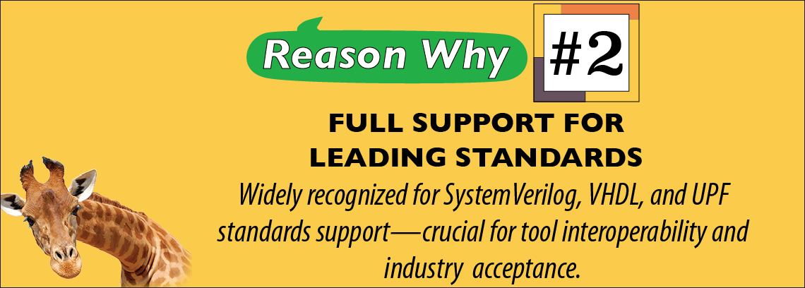 Verific’s SystemVerilog parser supports the entire IEEE-1800 standard and is compatible with leading industry simulators Incisive, QuestaSim and VCS.